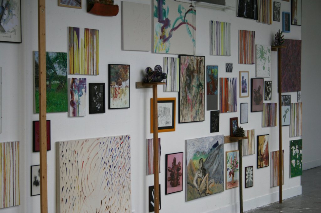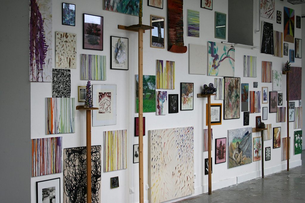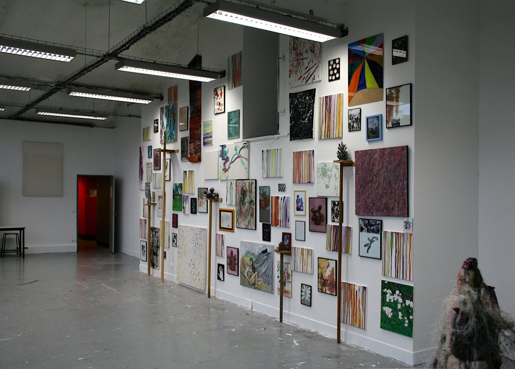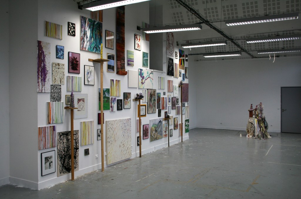 Ma Grand-mère, Installation Proliférante n°1, tableaux, dessins, estampes, photographies, herbier, sculptures en argile, sur mur, 400X850 cm, Université Paris 1 Panthéon-Sorbonne, centre Saint-Charles, 2009