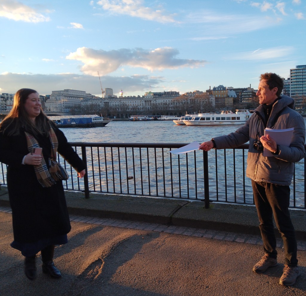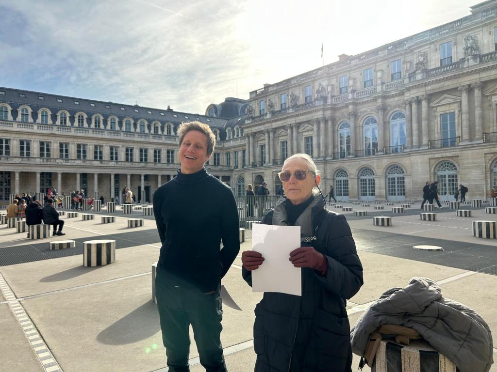 Paris, esplanade du Palais Royal, 8 février 2026: La distribution commence vers 11h, dans une partie ensoleillée de l’esplanade du Palais Royal à Paris. J’ai le plaisir de distribuer avec ma compagne Clotilde, qui prend quelques photos et participe à la distribution de ces 50 premières feuilles numérotées, signées et datées.