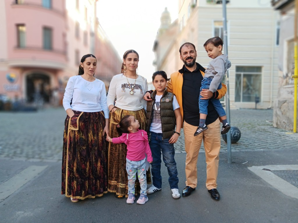 De l’autre côté de la place de la Liberté, j’ai continué ma distribution dans une autre rue piétonne. Cette rue est beaucoup plus calme. Une famille de tziganes s’approche, ils prennent ma feuille et nous engageons la conversation. Le père de famille me dit qu’il a habité à Bonnoeil en région parisienne et il affirme que les français sont les plus gentils des européens. J’ai proposé de les prendre en photo et ils ont accepté.